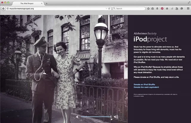 The iPod Project was the original name of the Music for Memory Project. The work below was the first campaign and introduced the idea of music bringing back memories.